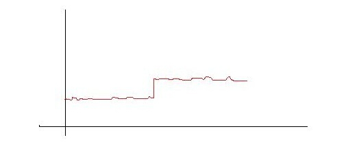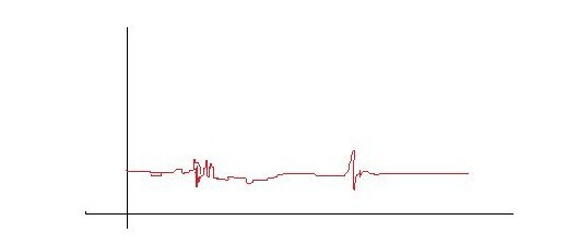 基線開始一直都很穩(wěn)定,但是突然基線跳動,跳動后基線在新的位置也很穩(wěn)定,如圖b