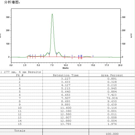 分步收集圖譜中最高吸收峰,經(jīng)分析方法檢測純度: