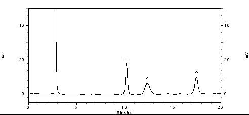 2、使用示差折光檢測(cè)器、Comasil NH2 250*4.6mm色譜柱分離果糖、葡萄糖和蔗糖樣品,峰形良好,分離度符合要求。