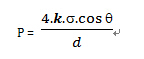 其中, P = 泡點(diǎn)壓力; d = 孔徑; k = 形狀矯正因子; q = 液固接觸角; s =表面張力
