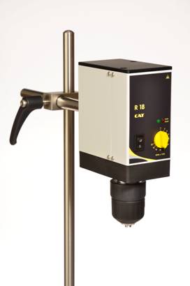 2) R18。 介于教學(xué)與科研之間,兩用型。 電子馬達(dá),內(nèi)置安全回路,有過(guò)載保護(hù), 攪拌量可達(dá)50L。無(wú)級(jí)調(diào)速范圍為110-2000RPM, 對(duì)10,000 mPas 粘度的液體都適用。R18 以性能穩(wěn)定,性價(jià)比優(yōu)而聞名。 是CAT 全球熱銷產(chǎn)品之一。