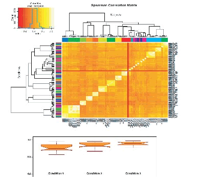 在宏基因組分析處理之前,按照以下三個(gè)條件,對(duì)II名志愿者的糞便樣本進(jìn)行處理。條件1:人工分裝的冷凍糞便樣本,和來自經(jīng)過固定、均相并在室溫下放置了一周后的進(jìn)行冷凍分裝樣本進(jìn)行比較:條件2:將手動(dòng)取樣的冷凍糞便樣本與穩(wěn)定的、均勻的、在環(huán)境溫度下貯存l周的經(jīng)冷凍取樣的糞便樣本進(jìn)行對(duì)比:條件3:人工分裝的冷凍糞便樣本,和來自經(jīng)過固定、均相并在-80℃存放一周后的進(jìn)行冷凍分裝樣本進(jìn)行比較。對(duì)每個(gè)條件下的樣本進(jìn)行測(cè)序,并使用Spea rman軟件進(jìn)行宏基因組的數(shù)據(jù)比較分析,以比較并確定每種取樣技術(shù)的差異。所有條件都顯示出高分值的相關(guān)性(>0 8)。其中,條件3相關(guān)性最佳,條件1相關(guān)性最差。