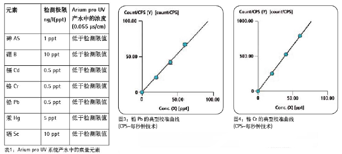 實驗在1級清潔室中采用Sartorius 的arium pro UV純水系統(tǒng)來完成。樣品取自產水端(沒有安裝終端過濾器),并通過ICP-MS系統(tǒng)7500cs(Agilent)完成分析[2]。