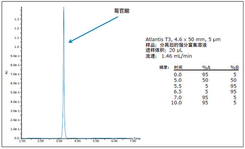 圖2. 紫錐菊粗提取物中菊苣酸(4)以及一種微量雜質(zhì)(3)(菊苣酸同分異構(gòu)體)的制備級分離