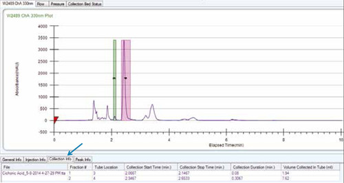 圖3. 查看色譜圖的同時可方便的查看餾分收集信息