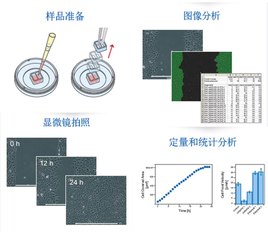 基本的步驟包括“劃痕”的制造,細(xì)胞遷移期間圖像的獲得以及后期數(shù)據(jù)的處理。