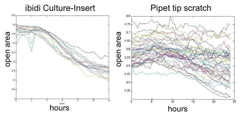 總結(jié):相比較于傳統(tǒng)的劃痕實(shí)驗(yàn),Ibidi的設(shè)計(jì)更科學(xué)、重現(xiàn)性更好。