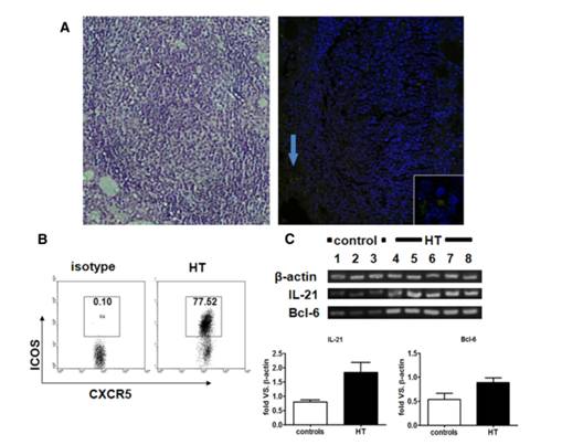 Tfh細(xì)胞在自身免疫類疾病進(jìn)程中發(fā)揮著重要的作用, 江蘇大學(xué)附屬人民醫(yī)院的科學(xué)家們研究了自身免疫類甲狀腺疾病(AITD)患者的Tfh細(xì)胞的功能。Tfh細(xì)胞是一類調(diào)控B細(xì)胞產(chǎn)生抗體的新的細(xì)胞亞群, 之前的研究表明CD4+ CXCR5+ICOS 或CD4+CXCR5+PD-1較高是Tfh細(xì)胞處于細(xì)胞周期的標(biāo)志。本研究以65位AITD患者和30位健康的人為研究對象, 用流式細(xì)胞儀測定Tfh 細(xì)胞處于細(xì)胞周期的比率。分析了CD4+CXCR5+ICOS較高的T細(xì)胞的比率與自身抗體或荷爾蒙的相關(guān)性。