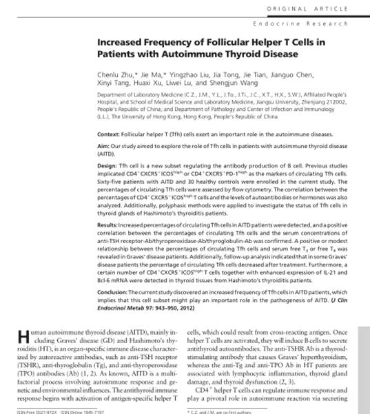 J Clin Endocrinol Metab:自身免疫類甲狀腺疾病患者的Tfh細(xì)胞增殖頻率