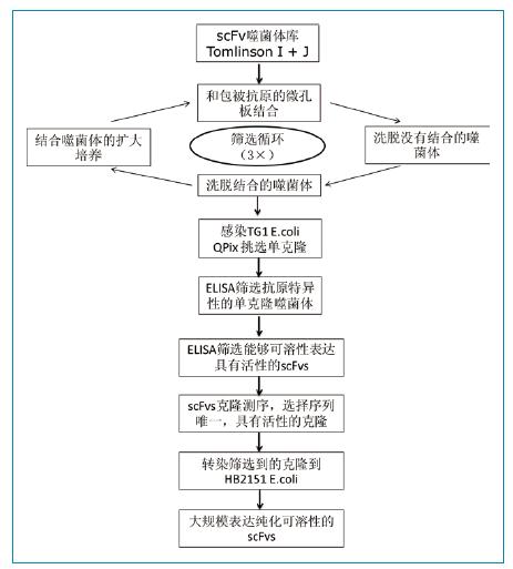 圖1:噬菌體庫篩選FGFR3特異性scFv抗體流程圖