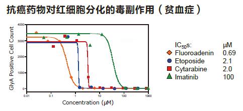 我們設(shè)計(jì)出一個非常適合檢測生長因子和抗癌藥物對造血作用影響的試驗(yàn),我們將造血干細(xì)胞中加入不同的生長因子進(jìn)行培養(yǎng),此外,可以用來評價幾種抗癌藥物的作用效果,使用標(biāo)記有FITC細(xì)胞系特異性的抗體進(jìn)行染色或者使用細(xì)胞示蹤綠色染料(Cell Tracker Green)。可以用于檢測許多表達(dá)譜系特異性標(biāo)記物的細(xì)胞或全部細(xì)胞數(shù)目,IC50s由不同因素所決定。試驗(yàn)窗口(assay window)>100,Z值>0.7。