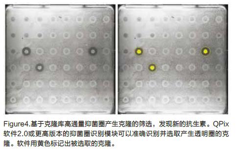 使用QPix400系列微生物克隆篩選系統(tǒng)以及QPix抑菌圈軟件識(shí)別模塊,我們可以輕松并且可靠地進(jìn)行高通量篩選透明圈產(chǎn)生克隆。這個(gè)自動(dòng)化的篩選方法將大大增加我們尋找新型抗生素的能力,用于應(yīng)對(duì)已有的或者新出現(xiàn)的抗生素耐藥菌引起的疾病。