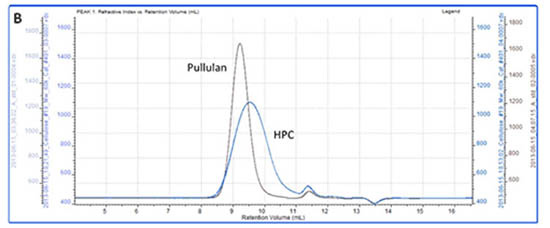 圖 2B: 支鏈淀粉和 HPC 的 RI 疊加色譜圖。