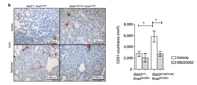 通過維也納Ludwig Boltzmann癌癥研究所的Grabner教授、Casanova教授及國(guó)外的科學(xué)家們研究,我們驚奇的發(fā)現(xiàn)在模式小鼠中STAT3在抑制肺癌方面十分重要。當(dāng)阻斷了STAT3信號(hào)時(shí),腫瘤的惡化速度加速。