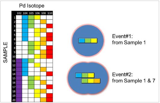 當(dāng)時(shí),Barcorde技術(shù)還沒(méi)有應(yīng)用于質(zhì)譜流式領(lǐng)域中,Zunder已經(jīng)豐富的熒光流式的Barcorde技術(shù)經(jīng)驗(yàn)。采用一種非冗余的二元編碼策略,使用鑭系金屬做為標(biāo)簽,他和同事Bodenmiller一起將這項(xiàng)技術(shù)應(yīng)用于質(zhì)譜流式。