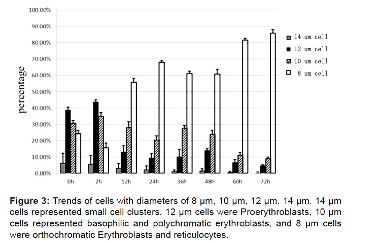 在相應的時間節(jié)點內(nèi),一系列的新發(fā)現(xiàn)被證實:多色細胞的細胞核經(jīng)過7~8小時會被吞噬;CD71和Ter119的表達會比成熟紅細胞更高;相應的stathmin, septin8 and RBBP4等細胞骨架相關蛋白表達降低很多。觀察詳細的紅細胞成熟過程會帶來更多的血細胞領域認知,會對紅細胞分化和致癌作用有更深入的了解。