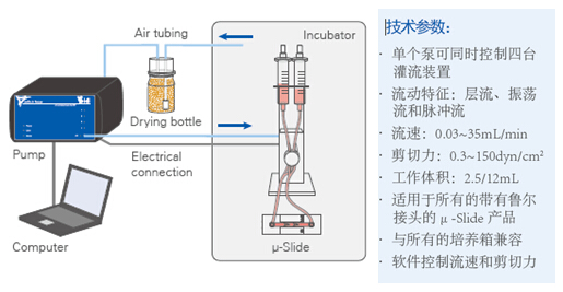 圖3. ibidi流體剪切力系統(tǒng)組成及技術(shù)參數(shù)
