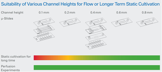 ibidi 流體剪切力系統(tǒng)是一個完整的整合方案,適用性強:可以將流體單元放在培養(yǎng)箱中進行長時程的細胞培養(yǎng);也可以配合加熱孵育系統(tǒng),直接在顯微鏡下進行活細胞觀察、成像(了解更多加熱孵育系統(tǒng)請點擊http://www.biomart.cn/infosupply/9975449.htm)。ibidi 剪切力系統(tǒng)操作簡單,實驗應(yīng)用范圍廣(圖5),可選擇的通道載玻片規(guī)格多樣(圖6),方便滿足不同的實驗需求。