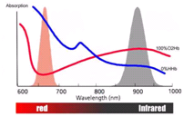 氧合血紅蛋白(HbO2)和還原血紅蛋白(Hb)存在不同的近紅外光吸收光譜及能示意圖