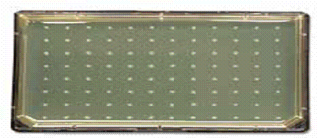 Figure 3.完成液體E.coli樣品從標準96孔板復制到OmniTray LB瓊脂固體平板后OmniTray平板的照片:A)接種完成后,OmniTray平板上可以清晰看到96接種針的樣品位置痕跡。B)同一塊OmniTray平板經過37度2天培養(yǎng)后,每一個接種的樣品位置都可以看到明顯的生長后的E.coli克隆,說明文庫復制操作可以成功將液體E.coli樣品從96孔樣品板轉移到OmniTray LB瓊脂固體平板