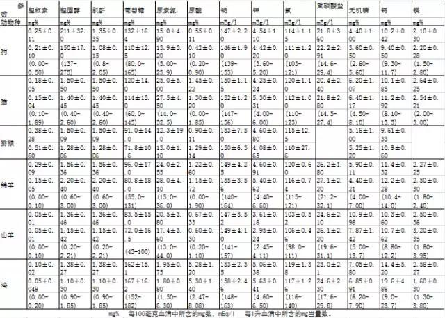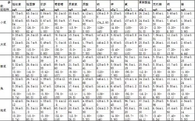 實(shí)驗(yàn)動(dòng)物血清生化指標(biāo)值(表)