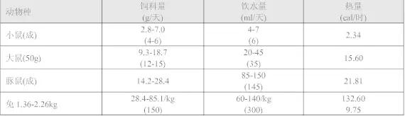 1、實驗動物飼料量、飲水量、產(chǎn)熱量表