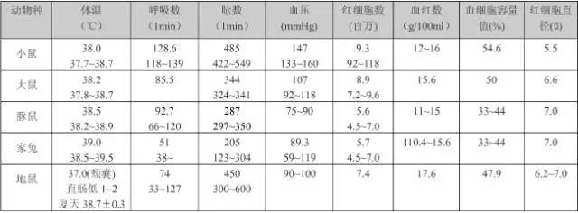 常用實驗動物生理學(xué)指標(biāo)