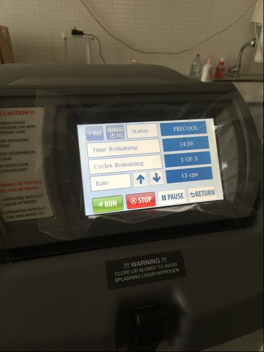 當(dāng)~當(dāng)~這個就是SPEX液氮冷凍研磨機6870D了,從側(cè)面看我們能看到它有兩個預(yù)冷腔和兩個研磨室,在研磨這一組樣品的同時可以預(yù)冷下一組樣品,大大節(jié)省您的時間