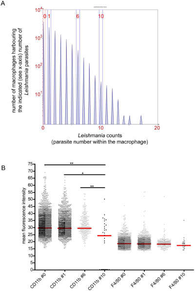 擁有不同寄生蟲(chóng)數(shù)量的巨噬細(xì)胞的表型分析。