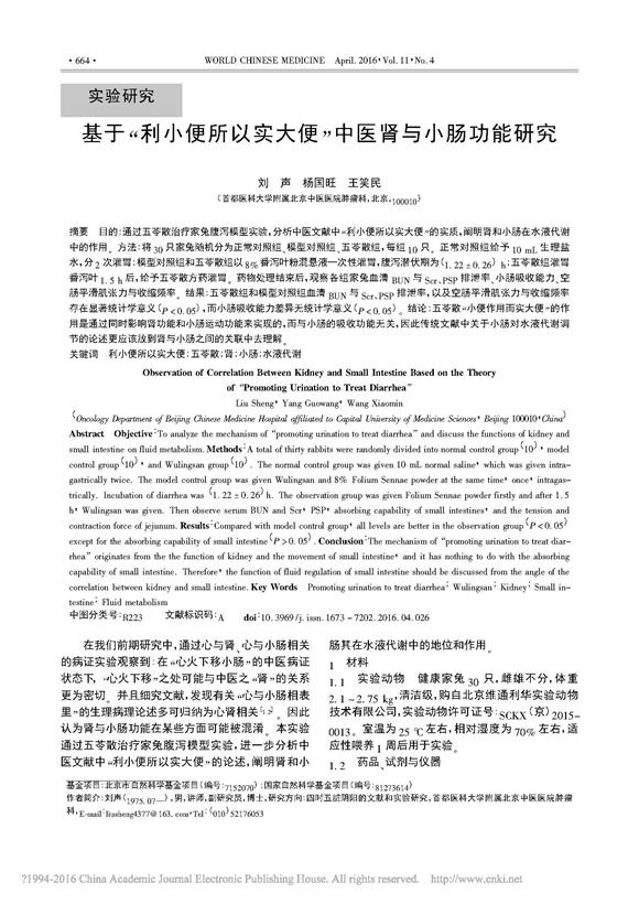 基于_利小便所以實(shí)大便_中醫(yī)腎與小腸功能研究
