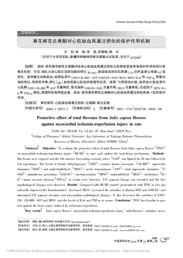 > 黃花柳花總黃酮對(duì)心肌缺血再灌注損傷的保護(hù)作用機(jī)制