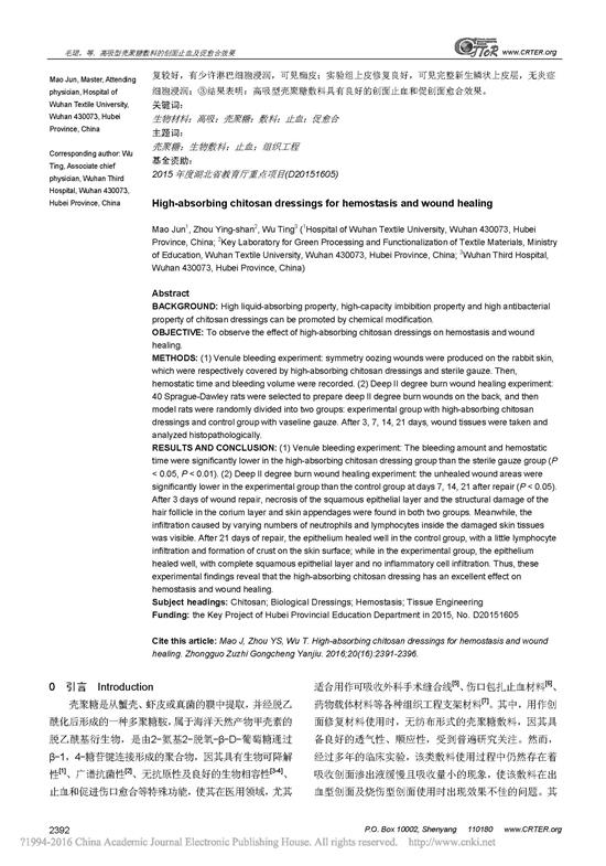 > 高吸型殼聚糖敷料的創(chuàng)面止血及促愈合效果