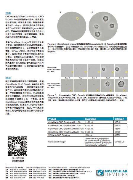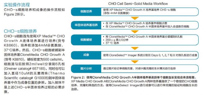 生物藥品審批的監(jiān)管標(biāo)準(zhǔn)一直都在不斷變化。其中用于細(xì)胞系單克隆來源的監(jiān)管條例驅(qū)使我們要在生物藥物開發(fā)過程中使用更有效的技術(shù)或方法。許多研究人員通常使用成像系統(tǒng)(如CloneSelect Imager)在液體培養(yǎng)基中驗證單克隆和監(jiān)控細(xì)胞的生長。其實,CloneSelect Imager系統(tǒng)也可以在半固體培養(yǎng)基中對細(xì)胞進(jìn)行成像。細(xì)胞在半固體培養(yǎng)基中的位置比較固定,使研究人員可以更加準(zhǔn)確地在不同時間點對同一個細(xì)胞進(jìn)行成像。實驗室常規(guī)方法通常使用有限稀釋進(jìn)行細(xì)胞克隆。但是,這種方法使用液體培養(yǎng)基培養(yǎng)細(xì)胞,使追蹤細(xì)胞變得比較困難或不夠準(zhǔn)確。因為在處理微孔板的過程中,懸浮細(xì)胞容易在孔內(nèi)發(fā)生位置移動(Figure1)。不能確保不同時間點成像的 是同一個細(xì)胞,從而大大降低單克隆驗證的準(zhǔn)確性。此外,有限稀釋有可能在一個孔內(nèi)加入多個細(xì)胞,需要進(jìn)行額外多次亞克隆來提高單克隆的概率。使用半固體培養(yǎng)基培養(yǎng)細(xì)胞給科研人員提供了一個更快更簡單的克隆方法,而且有利于追蹤細(xì)胞的生長。細(xì)胞在半固體培養(yǎng)基中的位置相對定,在常規(guī)實驗操作過程中細(xì)胞位置不會移動,可以生長成獨立單個的細(xì)胞克隆。所以,可以在同一個孔內(nèi)種植多個細(xì)胞,而且通過不同時間點成像,能夠清晰追蹤單個細(xì)胞的生長情況,提供單克隆的數(shù)字驗證數(shù)據(jù)。CloneSelect Imager為研究人員提供了一個在半固體培養(yǎng)基中對細(xì)胞進(jìn)行成像的方法。這個系統(tǒng)使用非侵入性檢測方法,無需標(biāo)記細(xì)胞直接進(jìn)行成像,可以對細(xì)胞生長情況進(jìn)行準(zhǔn)確定量;進(jìn)行單細(xì)胞來源克隆驗證,確保只選擇穩(wěn)定的單克隆用于下游研究。本文通過實際實驗驗證CloneSelect Imager在CloneMedia™CHO Growth A半固體培養(yǎng)基中對懸浮CHO-s細(xì)胞的成能。這種半固體培養(yǎng)基成份經(jīng)過專門優(yōu)化,適合各種CHO細(xì)胞系的生長。