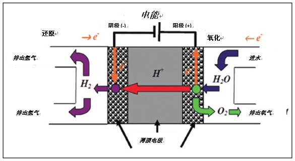 用于氫氣發(fā)生的質(zhì)子交換膜像反向操作燃料電池一樣高效工作。水在 PEM 處電解,PEM 為促進 H+ 離子運動的固體聚合物電解質(zhì),而 O2- 離子會被固定并形成 O2 分子(參見圖 1.)。氫離子由 PEM 晶格借助表面擴散、格羅圖斯 (Grotthuss) 擴散和運載擴散1三種機理沿離子通道傳遞。質(zhì)子傳遞通過跨膜質(zhì)子傳遞完成,該薄膜能夠滲透陽離子,但不能滲透陰離子或電子并且只能傳遞水合氫離子。2電解槽陰極收集的氫氣需要進行提純。提純可通過多種方法完成。