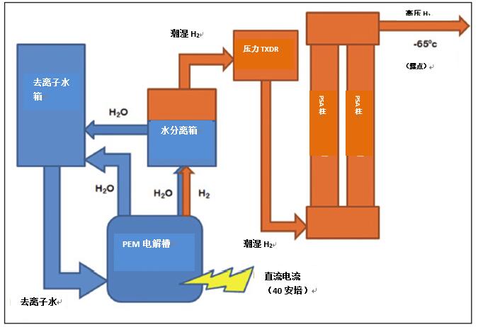 圖 2. 使用電解和提純綜合系統(tǒng)的氫氣發(fā)生器原理圖