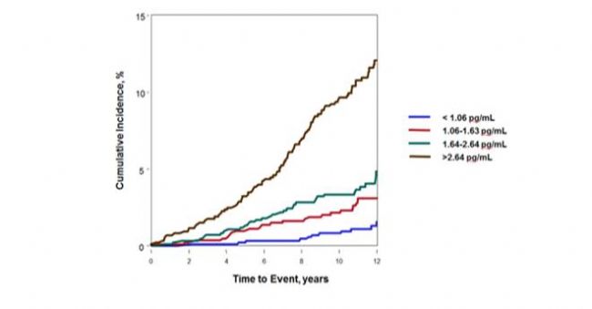 圖8. 單分子檢測技術(shù)對健康個體cTnI的檢測可預測心臟病累積發(fā)病率