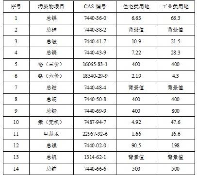 建設(shè)用地土壤污染風險篩選指導值中規(guī)定的金屬元素限制(單位:mg/kg)