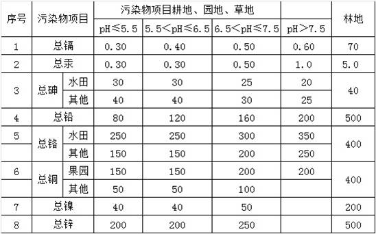 農(nóng)用地土壤污染物基本項目含量限值(單位:mg/kg)