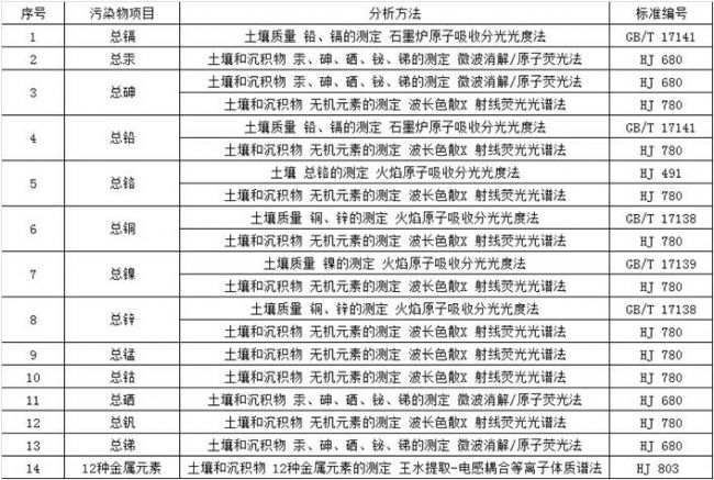 對于土壤中金屬元素的分析通常使用下表列舉的相關(guān)分析方法: