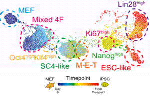 圖五、對(duì)MEF細(xì)胞的去編程過(guò)程的Flow-MAP分析