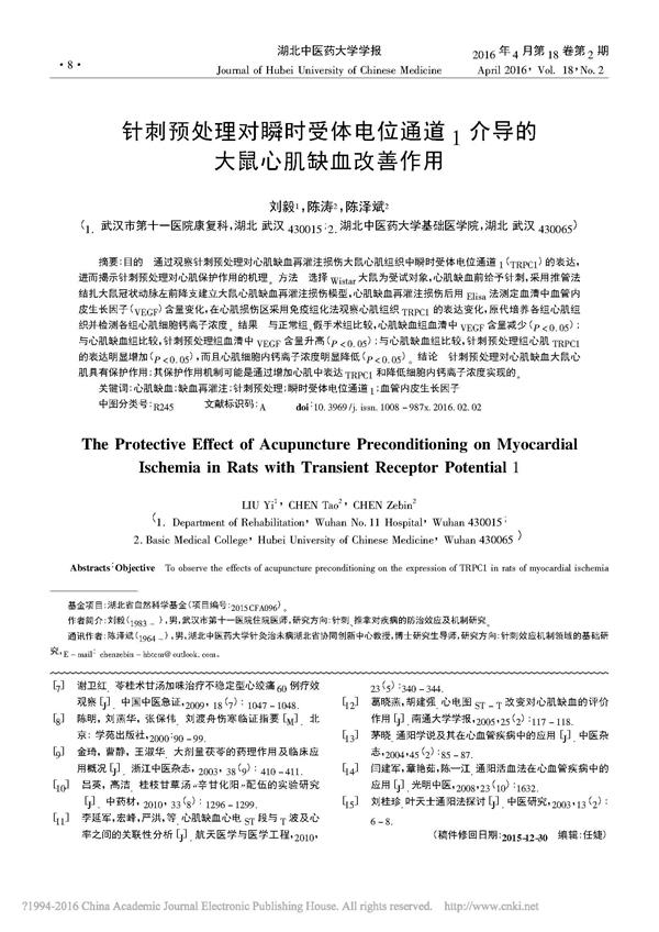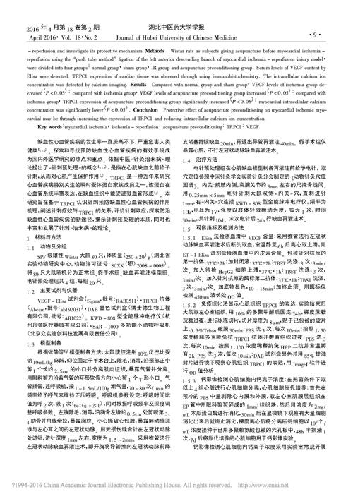 針刺預(yù)處理對瞬時受體電位通道1介導(dǎo)的大鼠心肌缺血改善作用_劉毅