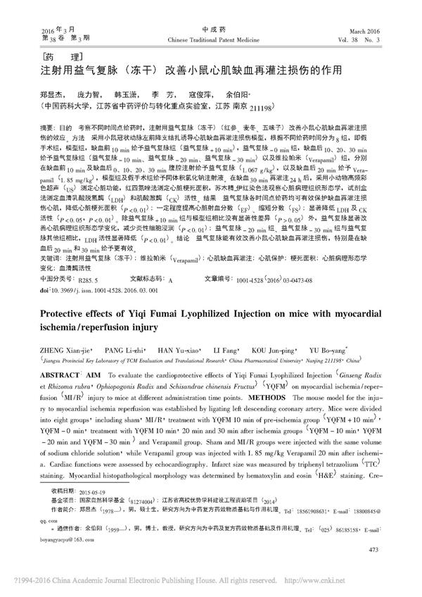 注射用益氣復(fù)脈_凍干_改善小鼠心肌缺血再灌注損傷的作用_鄭顯杰