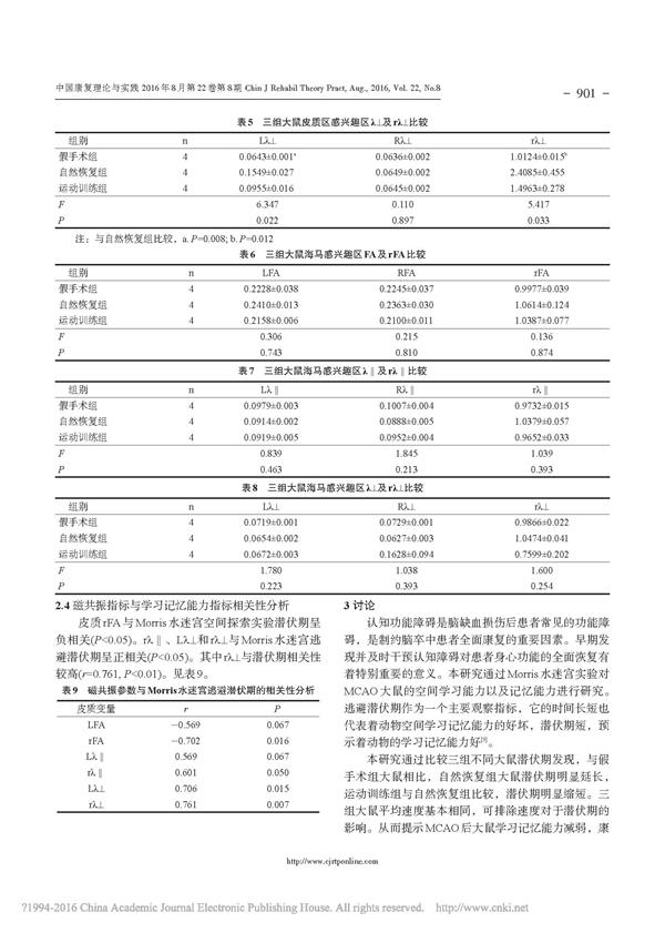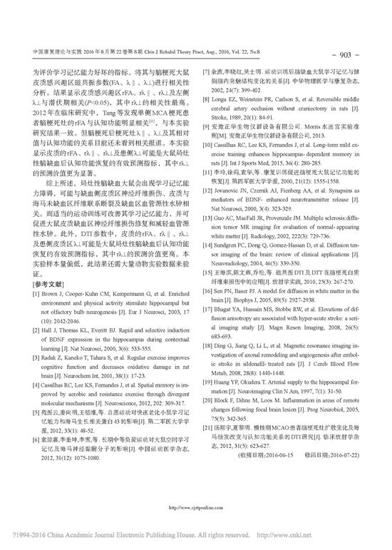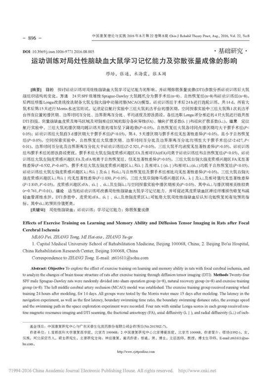 運動訓(xùn)練對局灶性腦缺血大鼠學(xué)習(xí)記憶能力及彌散張量成像的影響_繆培