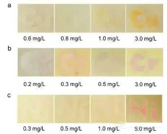 Monash University的Wei Shen教授組突發(fā)奇想,如果在μ-PAD上打印出相應(yīng)的重金屬離子符號,那么這樣的紙質(zhì)微流控芯片就可以實(shí)時(shí)傳遞檢測結(jié)果和水質(zhì)安全水平。
