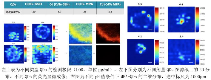 納米技術是當今材料技術的熱點,其中量子點(Quantum dots,QDs)及其應用(如作為生命科學量子點標記、癌細 胞成像等)被認為是最有前景的納米顆粒。而在這些應用中,必須精確檢測QDs并定性定量測量其空間分布,目前檢測方 法復雜、耗時且昂貴,CEINEC/Atomtrace激光光譜學實驗室利用LIBS技術,將不同劑量、不同PH值鎘(Cd)QDs溶液注射到濾紙上,測量分析了QDs的空間分布,為利用LIBS技術進行QDs快速檢測提供了重要的技術應用方案。