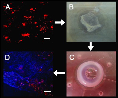 圖1 以量子點(diǎn)(紅色)標(biāo)記HLEC細(xì)胞培養(yǎng)層并移植入器官培養(yǎng)模型。