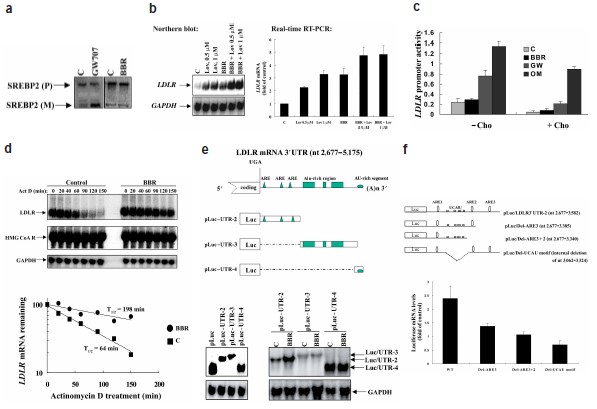 Figure 2 BBR increases LDLR expression by stabilizing LDLR mRNA through the 5′ proximal section of the LDLR mRNA 3′UTR.
