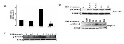Figure 3 Blocking ERK activation abolished the regulatory effect of BBR on LDLR.