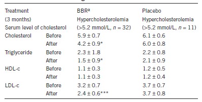 Table 1 Effects of BBR on serum lipids in the subgroup of hypercholesterolemic patients who were not taking other medication before or during BBR treatment.