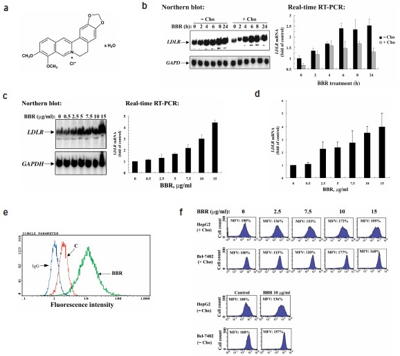 Figure 1 Upregulation of LDLR expression by BBR in human hepatoma cell lines.